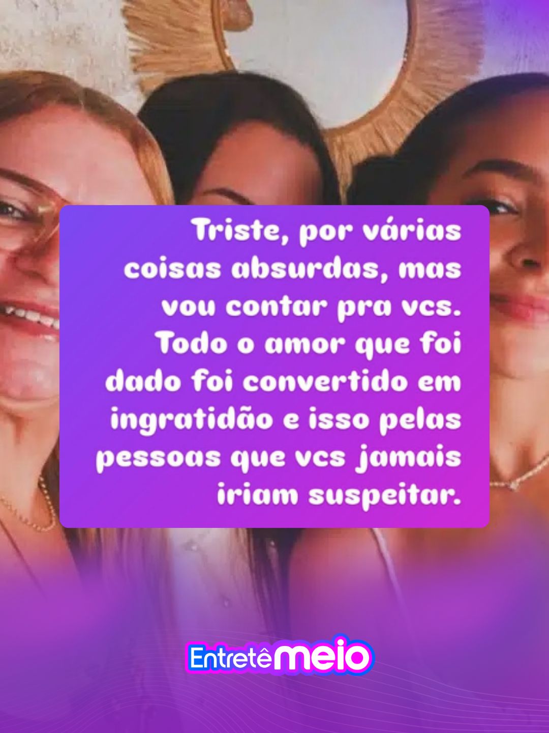 “Triste, por várias coisas absurdas, mas vou contar para vocês… Todo o amor que foi dado foi convertido em ingratidão, e isso pelas pessoas que vocês jamais iriam suspeitar…Me sinto um lixo diante das minhas filhas, que optaram pelo desconhecido ao amor da mãe delas”, disse.
