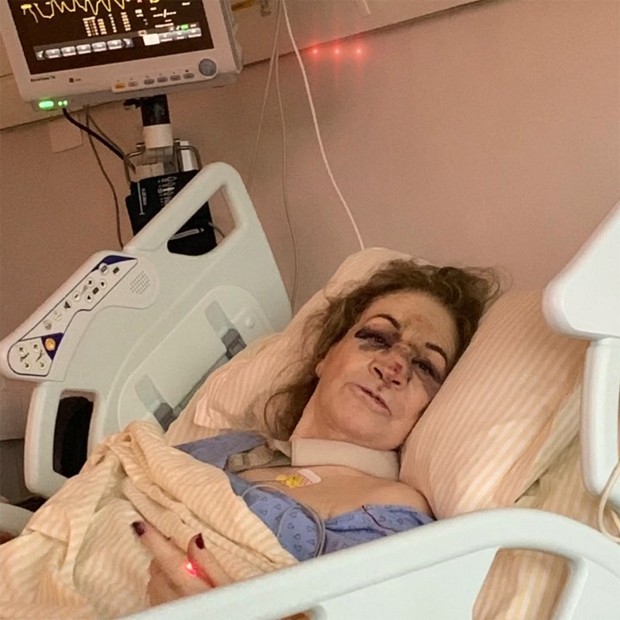 "ALERTA AOS IDOSOS: ESSA É MINHA MÃE, Cecília, que, domingo, teve uma queda feia em casa e está internada com fratura grave de braço - que deverá levar à cirurgia -, nariz e lado direito do rosto quebrados, hematoma na testa e 2 focos de sangramento no cérebro! Tudo por conta de um TAPETE que, apesar de todas as súplicas dos filhos, ela insistiu em manter na sala!Graças a Deus, vem reagindo bem ao tratamento, mas é uma situação sofrida pra todos nós! E desnecessária, se as normas de segurança fossem seguidas! Por favor, não insistam em tapetes, degraus e demais ítens que representem riscos dentro de casa", finalizou ela.