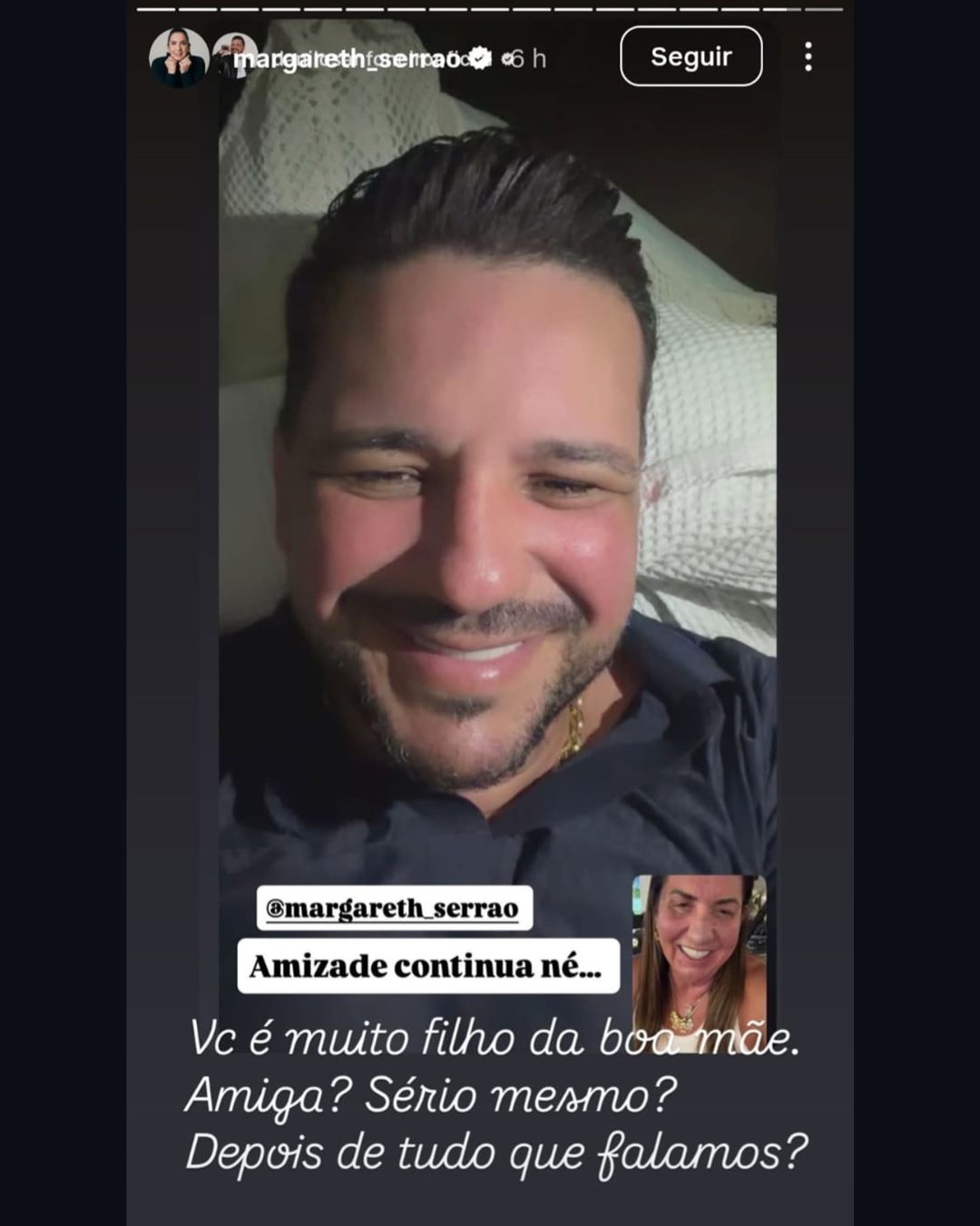 Tudo começou quando Danilo Nascimento publicou o print de uma chamada de vídeo com Margareth Serrão e afirmou que a amizade entre eles continuava, mesmo após o rompimento recente do relacionamento.