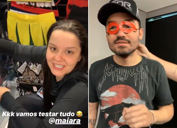 Fernando Zor e Maiara decidiram apimentar a relação e registraram o momento em suas redes sociais. No Instagram, o casal compartilhou uma série de vídeos divertidos em que aparecem em um sex shop. "Vamos testar tudo", disse o sertanejo para a amada.