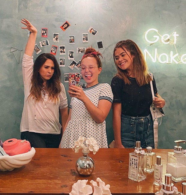 Tatá Werneck recebeu em sua casa a vista de Larissa Manoela e Maisa, na noite deste último sábado (18). As três posaram juntas em seu banheiro, que é famoso nas redes sociais pela decoração descolada e com fotos dos visitantes. As informações são da Revista Casa Jardim.