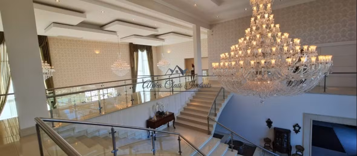A mansão possui seis quartos, suítes, dez banheiros, lago artificial, piscina, academia, sauna, elevador panorâmico, sala de cinema e quadra de tênis. O condomínio custa R$ 4.966 mensais e o IPTU sai a R$ 3,5 mil.