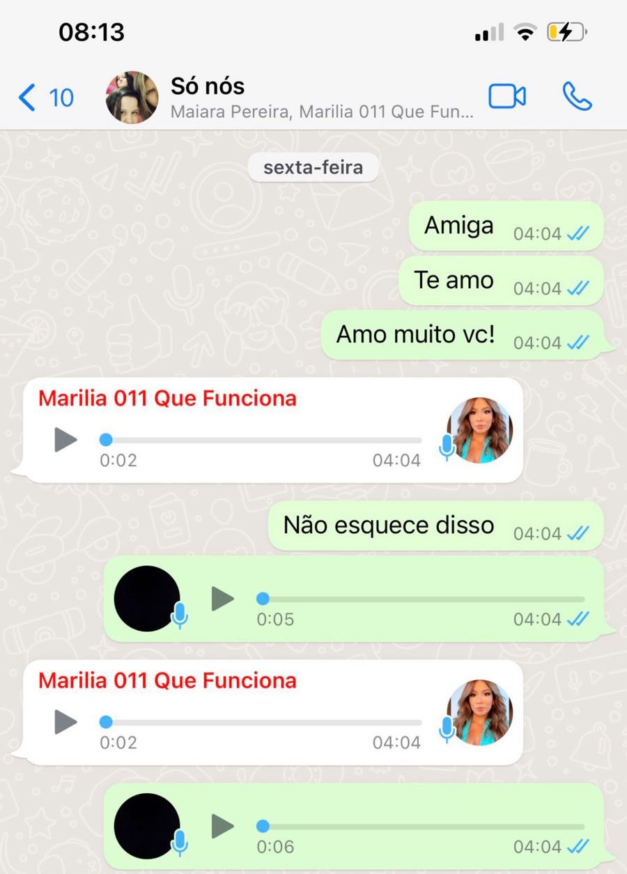 Maraisa, da dupla com Maiara, mostrou em seu Twitter nesta segunda-feira (8) um print da última conversa que teve com Marília Mendonça, horas antes do acidente aéreo que matou a cantora em Piedade de Caratinga (MG) na última sexta-feira (5). No registro, é possível ver as duas trocando declarações de carinho.