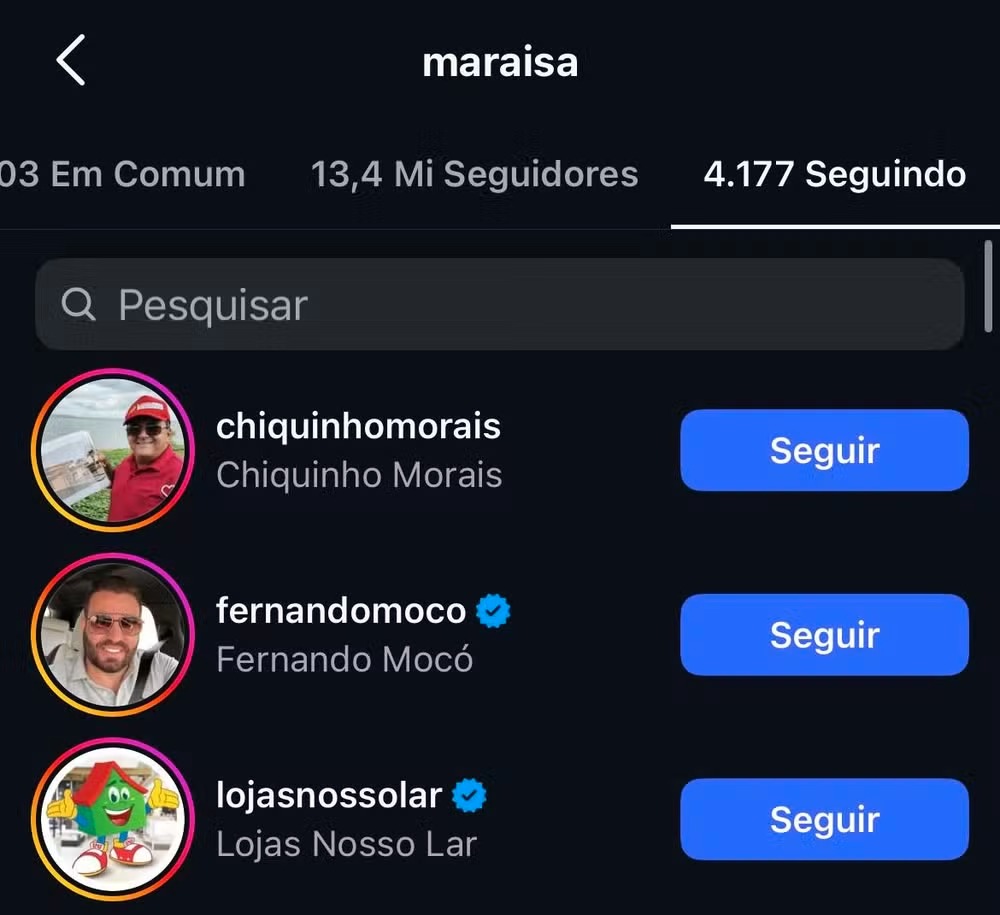 Maraisa volta a seguir Fernando Mocó / Foto - Reprodução
