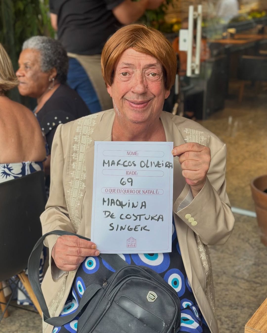 O ator Marcos Oliveira, conhecido por viver o Beiçola em A Grande Família, teve um pedido de Natal realizado nesta segunda-feira (29/12), no Retiro dos Artistas, em Jacarepaguá, na Zona Sudoeste do Rio de Janeiro. Aos 69 anos, ele recebeu uma máquina de costura enviada após participar de uma campanha da instituição nas redes sociais, que divulgou desejos natalinos dos moradores, emocionando seguidores pela forma como o presente chegou.