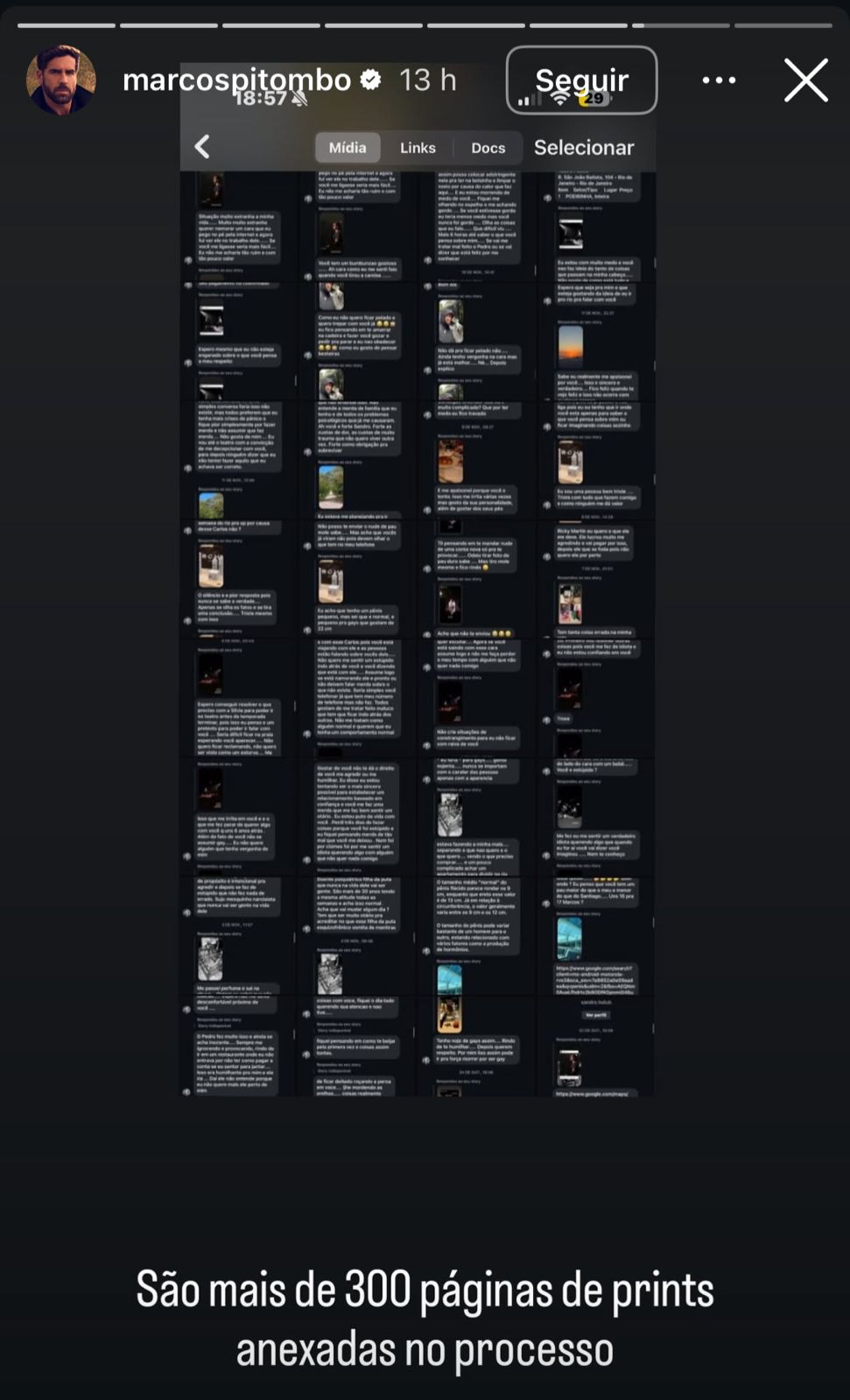 Nos stories, Pitombo publicou uma sequência de prints com mensagens do perseguidor e um vídeo em que o homem aparece próximo a ele. O ator destacou que já realizou denúncias, mas que mesmo assim o homem continua a perseguição.