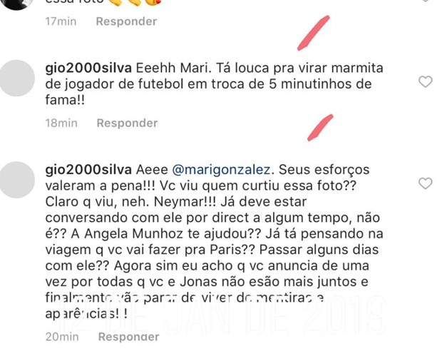 "Eu exponho a minha vida aqui, na hora de uma situação difícil eu também tenho que expor. Muita gente que me segue aqui gosta de mim e de Jonas. Eu quero deixar registrado, não sei quanto de perigo está tendo, não sei o nível psicológico dessa pessoa. Já estou procurando ajuda, mas queria compartilhar com vocês. Isso já está acontecendo há um tempo, meus amigos já sabiam", contou Mariana.