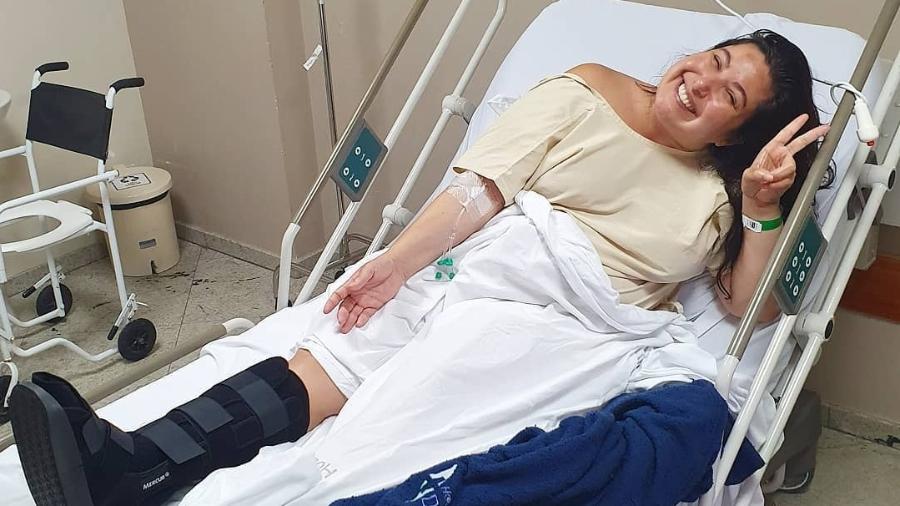 "Num momento de felicidade plena, cheia de motivos pra agradecer e comemorar, pulando na chuva feito criança, escorreguei feio na grama e acabou-se a brincadeira". A atriz agradeceu o apoio do namorado, Diego Braga, e da equipe do hospital.