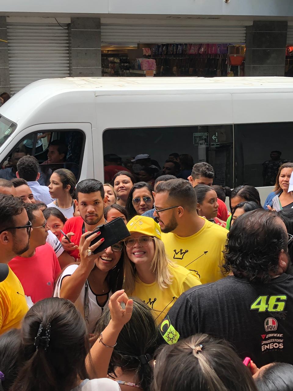 A vendedora Leidiane Rodrigues vibrou ao conseguir tirar uma foto com a cantora. “Assim que ela desceu da van que tinha pouca gente, ela estava mais acessível, super simpática, pedi para tirar selfie. É muito louco você estar no trabalho e do nada a Marília Mendonça na esquina acessível e tirando foto”, disse.