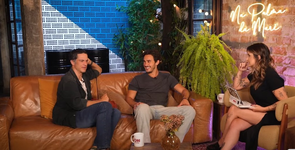 O ator Mateus Solano e o tambem ator Filipe Bragança em participação no videocast Na Palma da Mari. Foto: Reprodução/CNN
