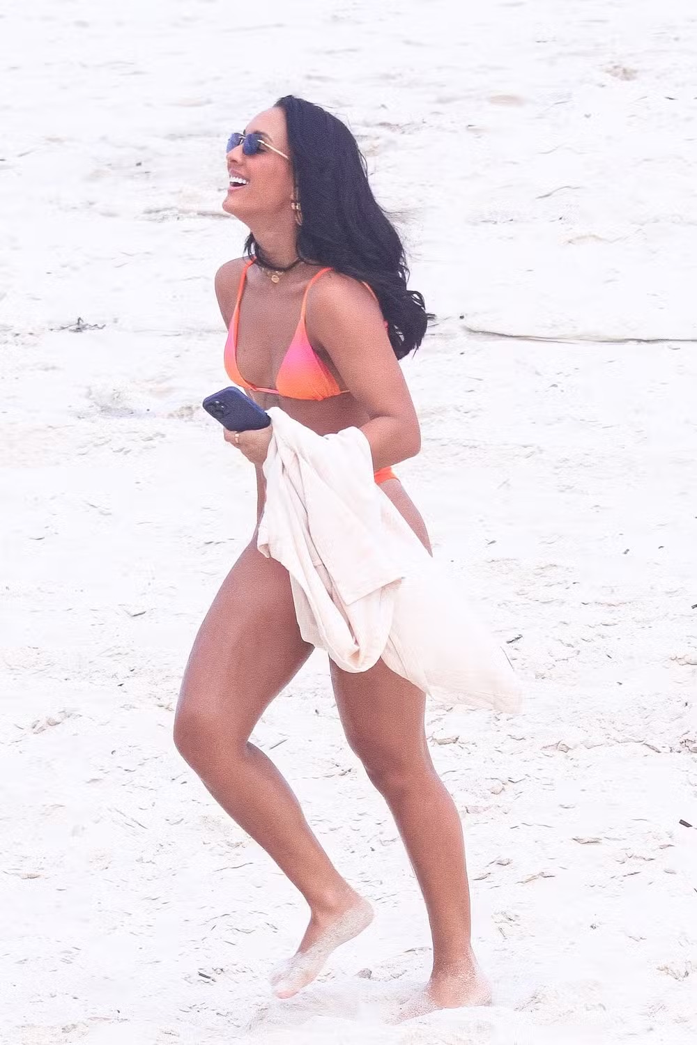 A ex-BBB 26, Maxiane, aproveitou esta quarta-feira (8) para curtir um dia de praia. A influenciadora apostou em um biquíni fluorescente com degradê em tons de laranja e rosa, combinado com uma camisa soltinha na cor creme e acessórios dourados, reforçando o estilo “casual chic” que marcou sua passagem pelo reality.