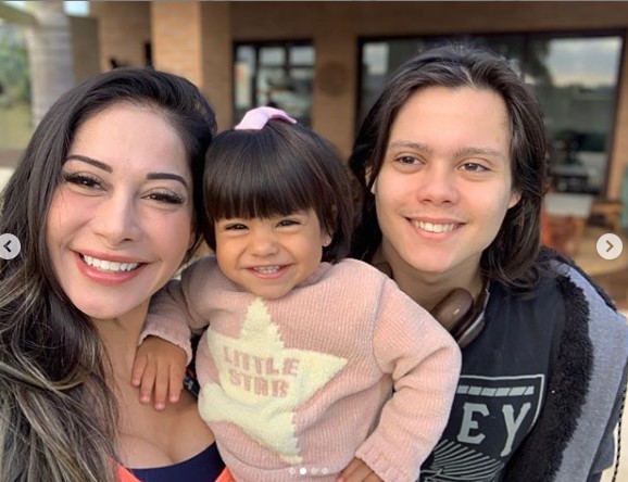 Mayra Cardi postou uma fotos ao lado dos filhos e desejou feliz Dia dos Pais para Nelson, seu primeiro marido, e também Arthur Aguiar, com quem se envolveu publicamente em brigas e polêmicas, revelando as traições do cantor.