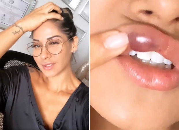 Mayra Cardi surpreendeu seus fãs ao aparecer em seu Instagram com a boca toda roxa e muito inchada. Bem-humorada, a coach de emagrecimento explicou que levou uma cabeçada da filha, Sophia, de 1 ano e 3 meses de idade. As informações são da Revista Quem.