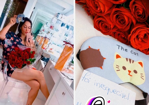 Mayra Cardi ganhou flores e cartão romântico de novo affair! A coach contou nos stories como foi o encontro. "Saí do banho e tinha champanhe me esperando, flores, cartãozinho... Fazia séculos que eu não sabia o que era isso... Não sou fã de flores, mas depende do contexto né meu amor?!", disparou. As informações são da Glamour.