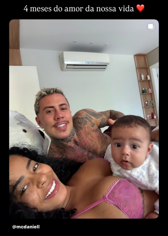 Apesar da ausência, o funkeiro fez uma homenagem mais cedo para o filho, mostrando que a data não passará em branco, será apenas adiada. "Bom dia de 4 meses do nosso príncipe. Papai vai para Portugal trabalhar com o coração apertado de saudade de vocês, mas quando voltar vamos comemorar", escreveu em uma publicação ao lado de Rás e da noiva Lorena Maria.