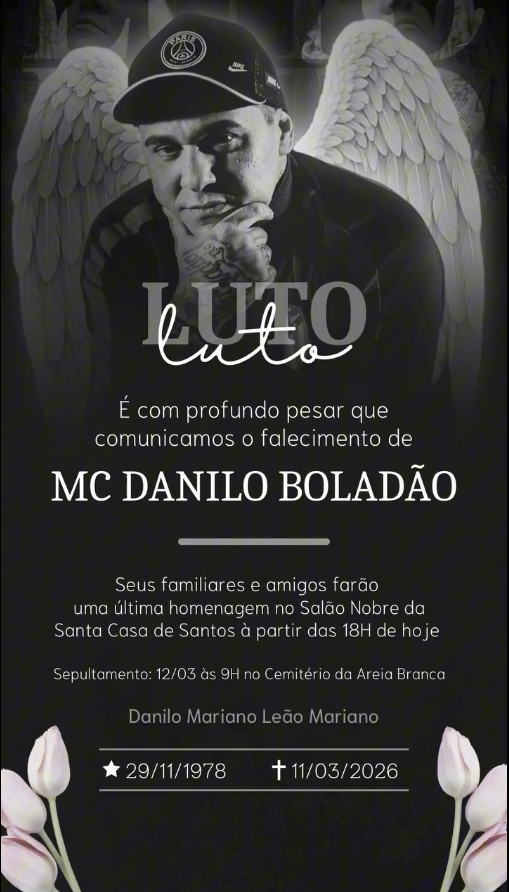 O cantor MC Danilo Boladão morreu aos 47 anos na madrugada desta terça-feira (11), em Santos, após sofrer três paradas cardiorrespiratórias. O artista, cujo nome de batismo era Danilo Mariano Leão Laureano, chegou a ser socorrido, mas não resistiu.
