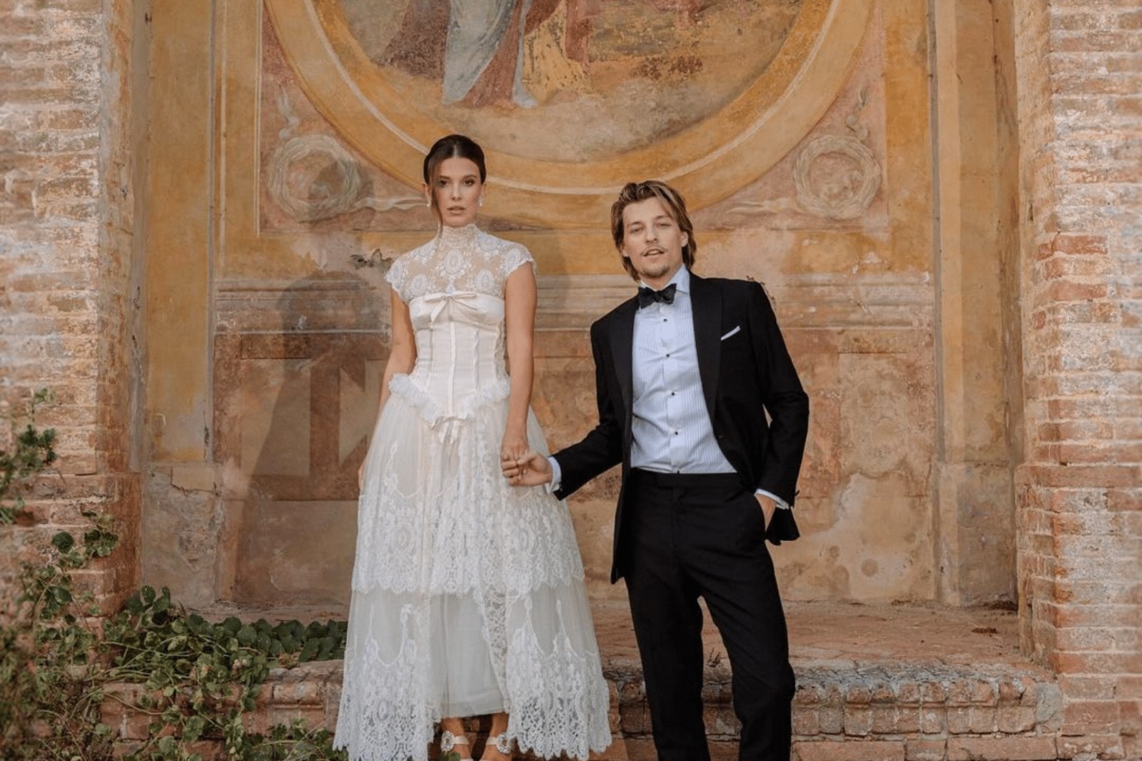 Millie e Jake se casaram de forma discreta e luxuosa em maio do ano passado, um mês após o noivado, e divulgaram fotos da cerimônia em outubro. A cerimônia aconteceu na Villa Cetinale, em Sovicille, Toscana.