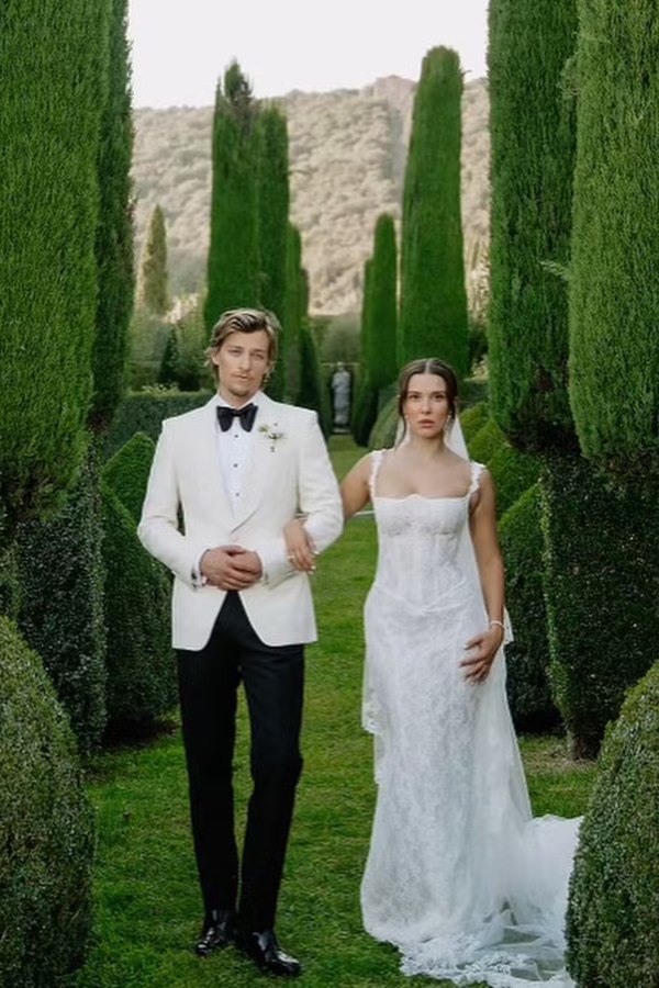 A estrela de Stranger Things, Millie Bobby Brown, publicou pela primeira vez, nesta quarta-feira (2), as fotos de seu casamento com Jake Bongiovi, filho do cantor Jon Bon Jovi. Em suas redes sociais, a atriz de 20 anos mostrou registros da cerimônia secreta e luxuosa que realizou para oficializar a união.