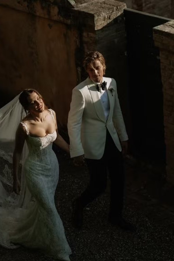O casal de jovens anunciou o noivado em abril e se casou um mês depois, em uma cerimônia discreta. No entanto, a atriz foi flagrada em julho provando um vestido de noiva, o que gerou rumores de que eles fariam uma segunda celebração, menos intimista. Apesar dos registros do casamento, não se sabe se as fotos são de maio ou da segunda comemoração.