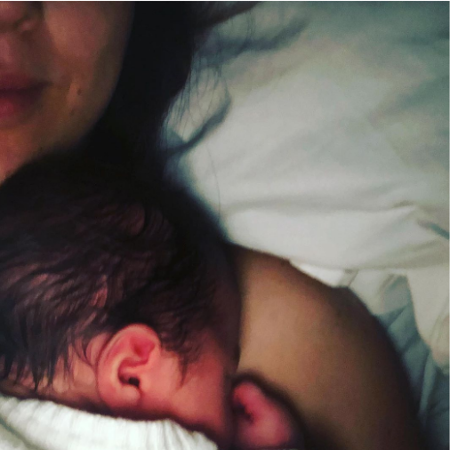 Foi ela quem deu a notícia no Twitter ao postar a frase "ela é linda". Depois, ela divulgou uma foto do parto.