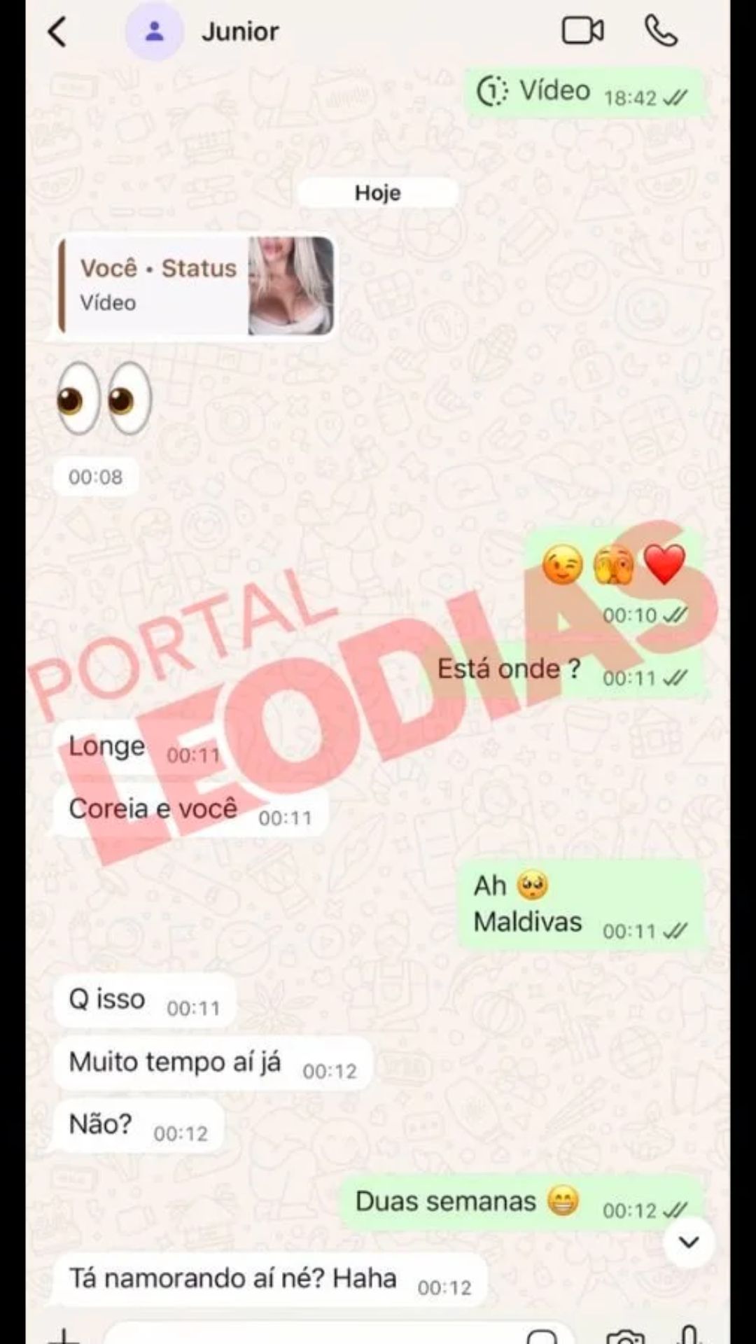 Em uma das conversas mais recentes, Vinicius teria respondido a um vídeo de Day com um emoji de olhos curiosos. Ao ser questionado por ela sobre onde estava, o craque respondeu: “Longe. Coreia e você?”. A modelo então disse estar nas Maldivas, e o jogador reagiu em tom descontraído: “Tá namorando aí, né? Hahaha”.