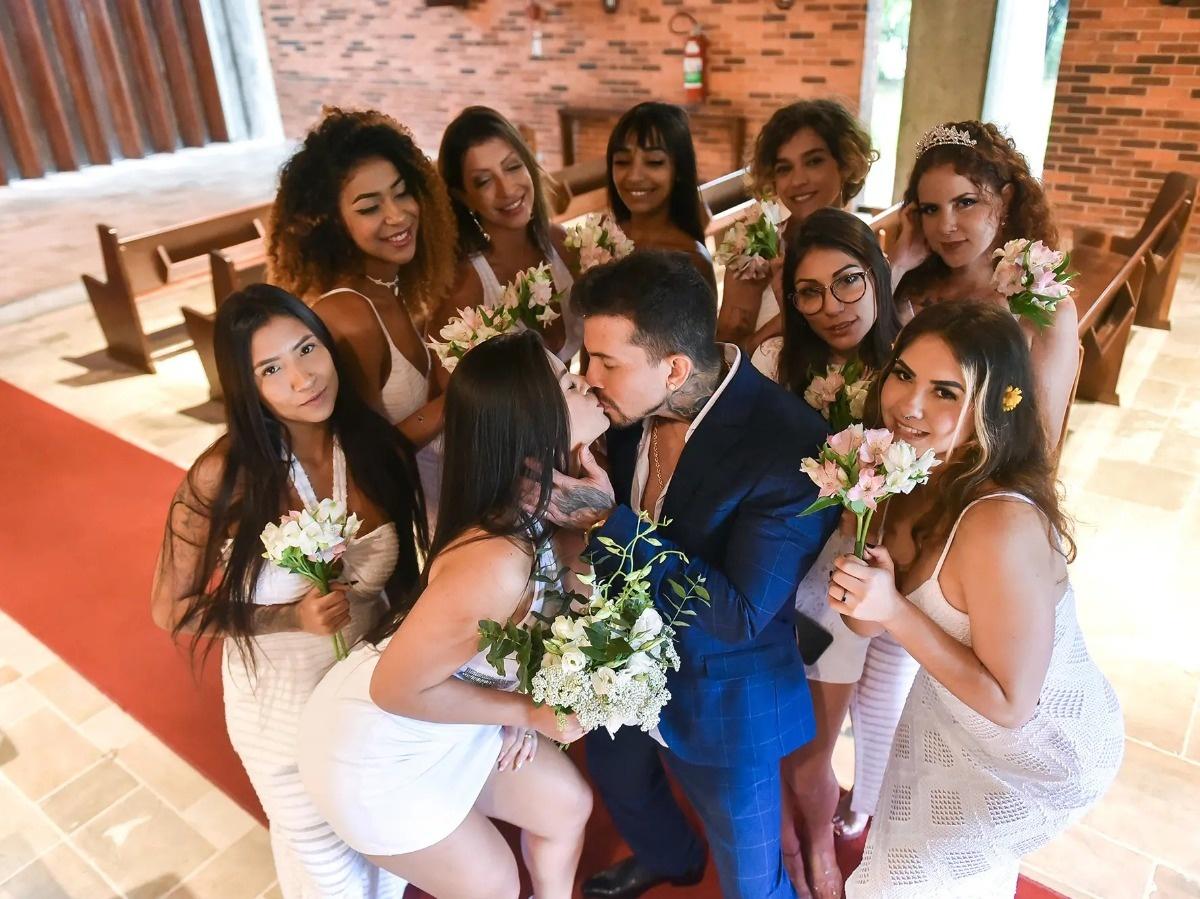 O modelo e influencer e as suas oito mulheres no dia do casamento que repercutiu em todo o país
