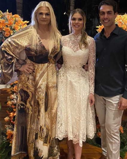 Enquanto a decoração, a animação e os looks da festa estavam sendo mostrados pelo primo da noiva, que assumiu a cobertura do evento no Instagram, Monique Evans também fez revelações nos Stories da filha.