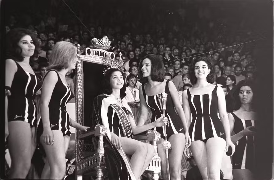 Ieda Maria Vargas (sentada no trono) foi eleita no concurso de beleza Miss Brasil e Miss Universo — Foto: Agência O Globo