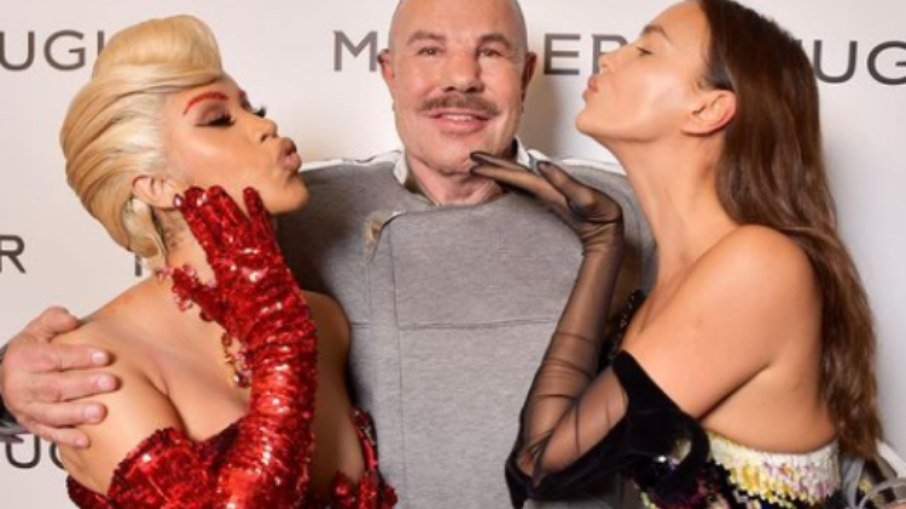 Thierry Mugler com Cardi B e Irina Shayk. (Foto: Reprodução - Instagram)