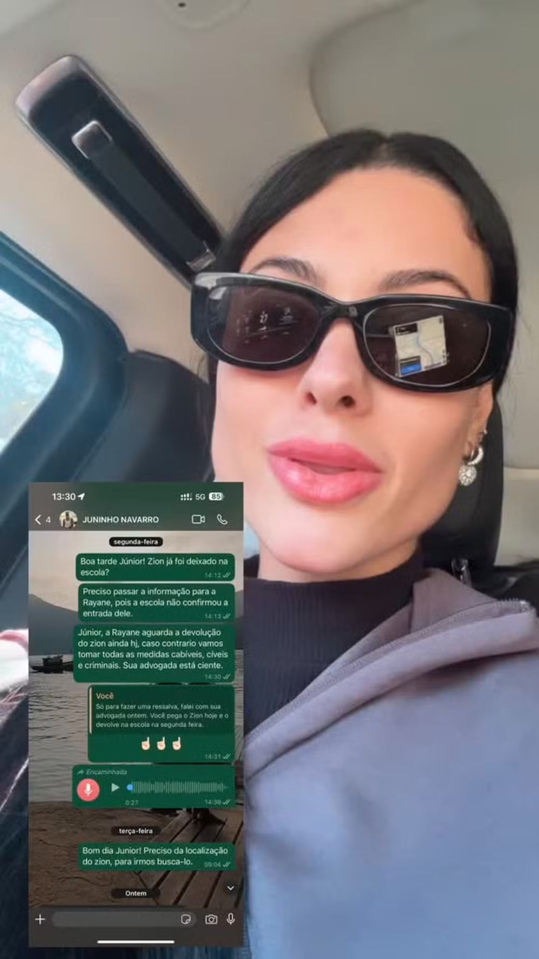 Em seu desabafo, Rayane compartilhou capturas de tela para comprovar que o ex-companheiro não respondeu às tentativas de contato da advogada. Ela ressaltou que interrompeu compromissos para buscar Zion. “Eu larguei tudo que eu tava fazendo em buscar meu filho, porque ele tem uma rotina”, afirmou.