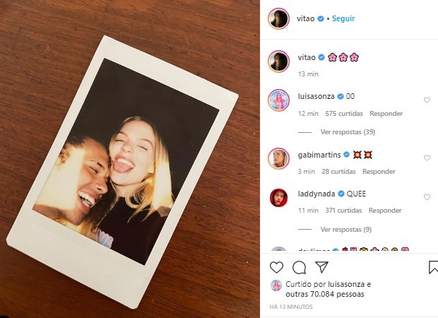Tanto na postagem de Luisa quanto na feita por Vitão, a legenda é a mesma: emojis de flores cor-de-rosa. Da mesma forma, ambos comentaram na foto um do outro o número "00", o que foi observado pelos seguidores e apontado como provável referência a uma música que deve ser lançada em breve.
