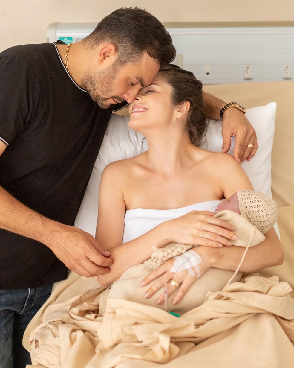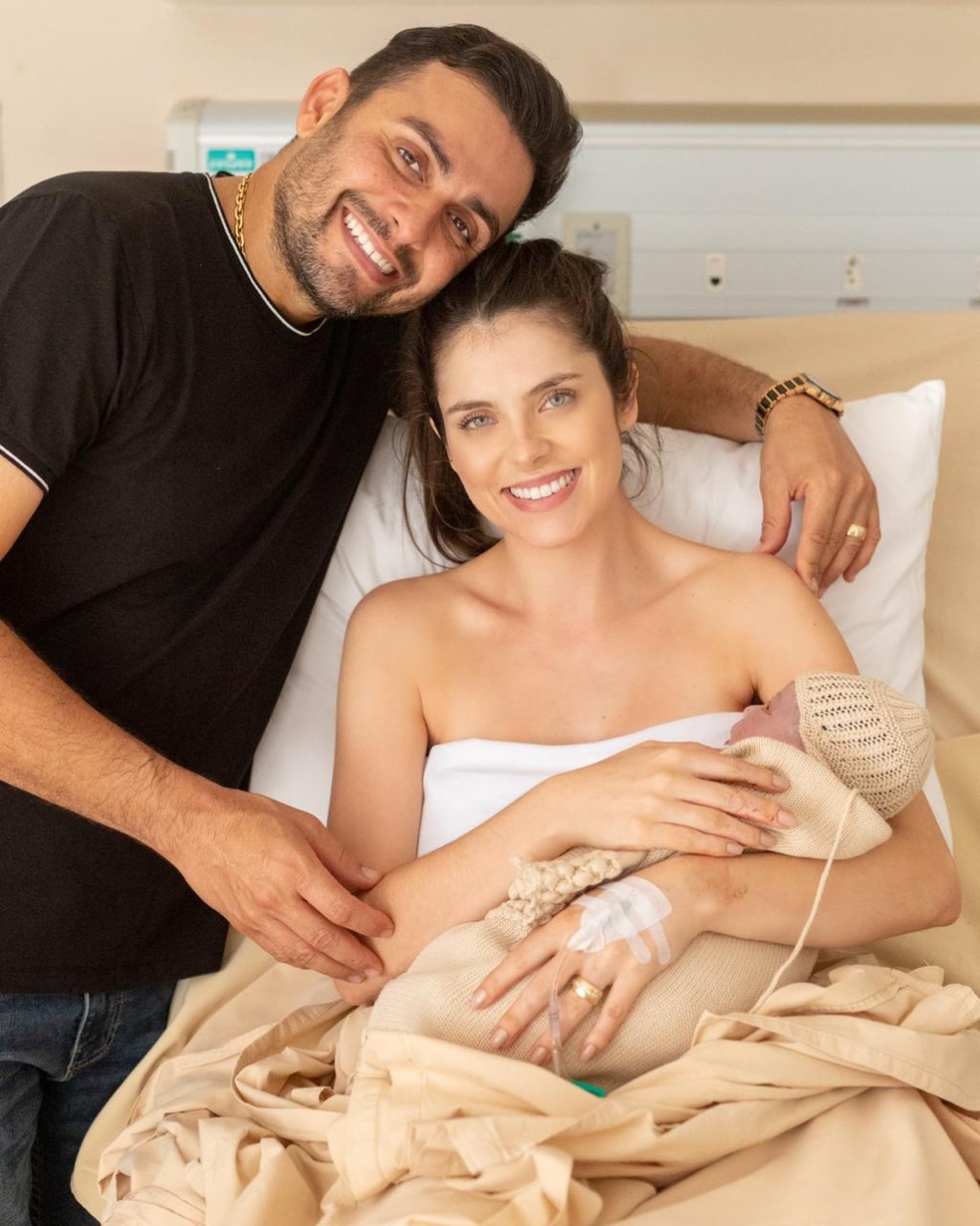 Felizes, papais divulgaram as fotos do primeiro filho. Em entrevista, eles falaram da escolha do nome.