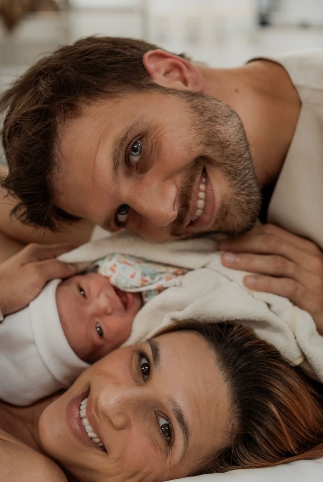 A ginasta Jade Barbosa, de 34 anos, e o administrador Leandro Fontanesi celebraram a chegada da primeira filha, Eva. A bebê nasceu para completar a família, e os pais anunciaram a novidade nesta terça-feira (18), com alegria e gratidão.