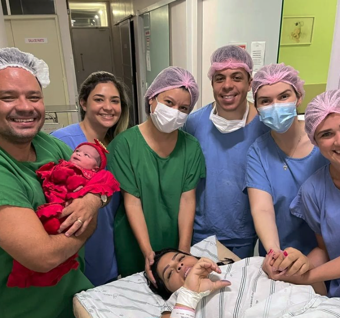 A jornalista informou que a pequena chegou “com a gostosura” de 3.640kg, em um parto que se dividiu entre humanizado e cesáreo.