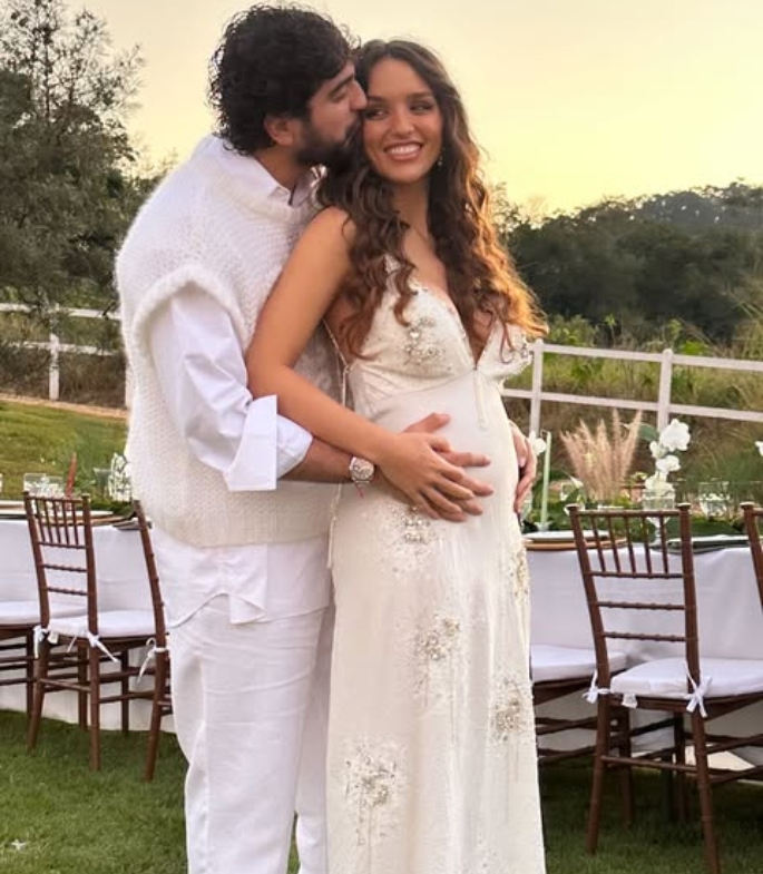 Nattan e Rafa Kalimann durante chá revelação Foto: Reprodução/Instagram