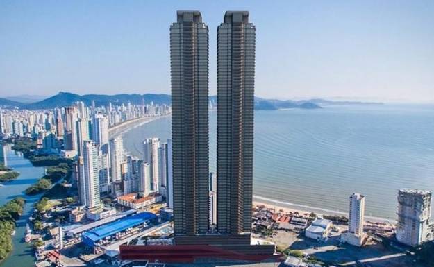 O edifício Yatchouse Pasqualotto, em Balneário Camboriú, terá 81 andares em cada torre. Será o mais alto do Brasil.