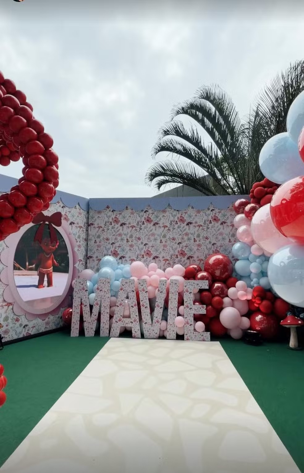 "Hoje é o aniversário antecipado da Mavie, de 2 anos. Vamos fazer diferente dessa vez, uma festa mais focada nas crianças. Então, deve ter gente aí falando, nossa, não vão chamar... Mas não, a gente quis fazer uma festa menor, mais íntima, com pessoas que têm crianças para elas se divertirem, explicou.