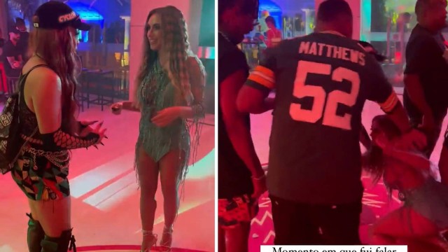 Ao ir cumprimentar Gloria Groove, na festa de aniversário de Ludmilla, Nicole Bahls seguiu à risca a música "A queda", da artista.