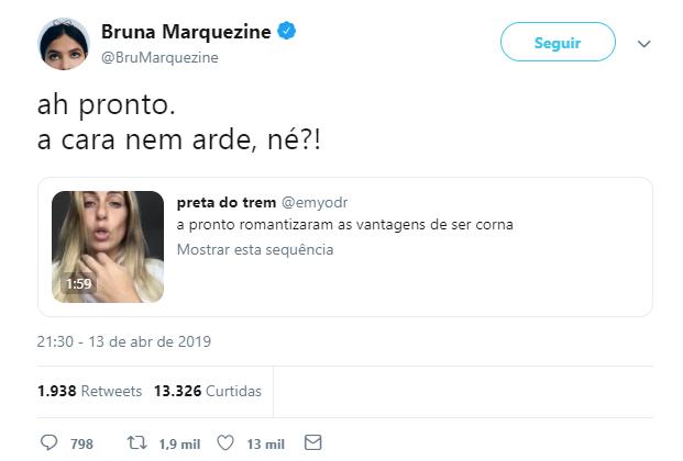 Indignada, Bruna comentou: "Ah, pronto. A cara nem arde, né?!"