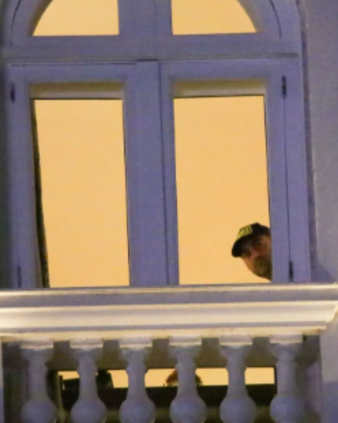 Michael Polansky, 46, noivo da cantora Lady Gaga, 39, surgiu na janela de uma suíte do Copacabana Palace, no Rio de Janeiro, nesta quarta-feira (30). O empresário norte-americano, que raramente é visto ao lado da artista, foi visto observando a paisagem.