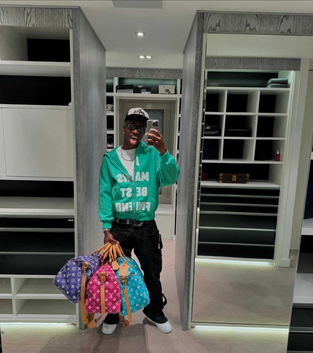 Vini Jr, posa em sua casa que sofreu princípio de incêndio Foto: Reprodução/Instagram