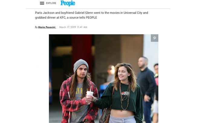 Mais tarde, Paris foi vista ao lado do namorado, Gabriel Glenn, durante um passeio por Los Angeles. O casal foi ao cinema, segundo a People, e jantou em no KFC. Em imagens, a dupla aparece sorrindo. No Instagram, a jovem publicou uma foto do jantar com Gabriel.