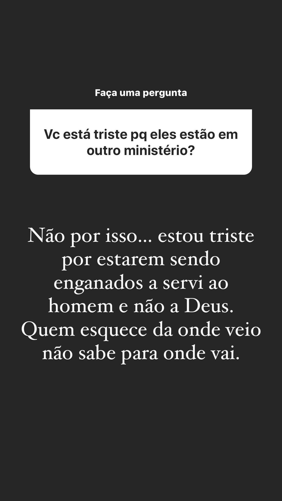 "Provaçãozinha, do nada entrou uma pessoa em casa se passando por apóstolodizendo ajudar pessoas. Aos poucos o que vi foi uma pessoa maliciosa alienando mentes fracas. promovendo dissenção, separação de casal, etc Tudo pelo velho motivo de sempre: ganância e poder dos homens. Mas não vão muito longe."