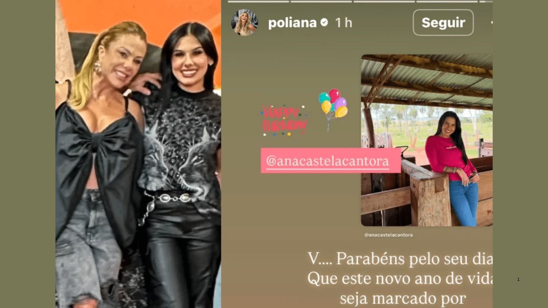No texto publicado, Poliana escreveu: “V… Parabéns pelo seu dia! Que este novo ano de vida seja marcado por crescimento, alegrias e momentos que fortaleçam a sua essência!”. A escolha da inicial, que remete ao nome da influenciadora Virginia Fonseca, ex-esposa do atual de Ana Castela, virou assunto entre os fãs. Muitos interpretaram como deslize, outros brincaram com a coincidência.