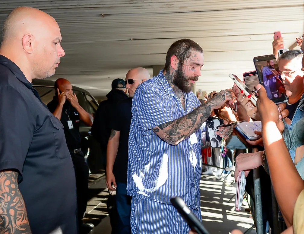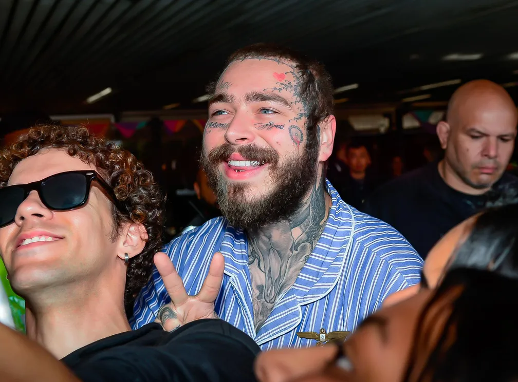 Post Malone chega ao Brasil para o Rock in Rio e atende fãs de 'pijama' |