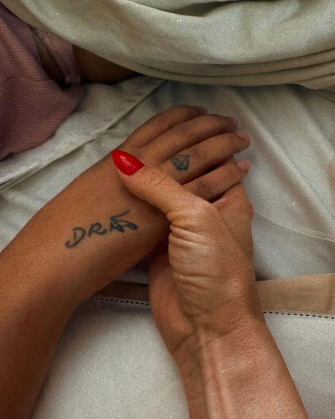 No antebraço direito, estavam marcados os nomes de Francisco — filho de seu relacionamento com Otávio Muller — e Sol de Maria, sua neta de 9 anos, filha de Francisco com Laura Fernandez. Do lado interno do braço, um espelho e três corações também estavam tatuados. Já no antebraço esquerdo, havia a imagem de Jesus Cristo.