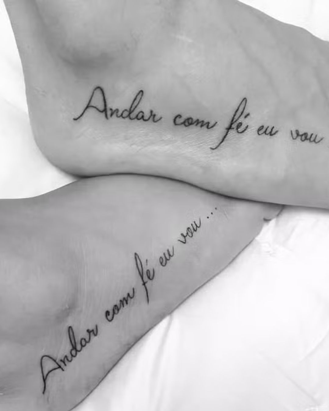 Nos pés, a frase "Andar com fé eu vou…" também havia sido eternizada, retirada de outra música de Gil, feita quando estava noiva de Rodrigo Godoy, com quem se casou posteriormente.