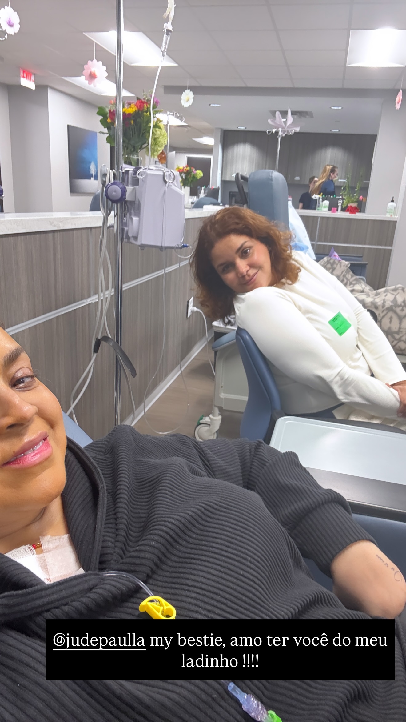 "Minha irmã amada Maria Gil, essa cuida mesmo!! Obrigada por estar aqui comigo!!", escreveu na legenda da foto, em que está acompanhada de uma imagem ao lado de Maria. "My bestie, amo ter você do meu ladinho", declarou para a amiga Jude Paula, com quem mantém uma amizade de longa data.