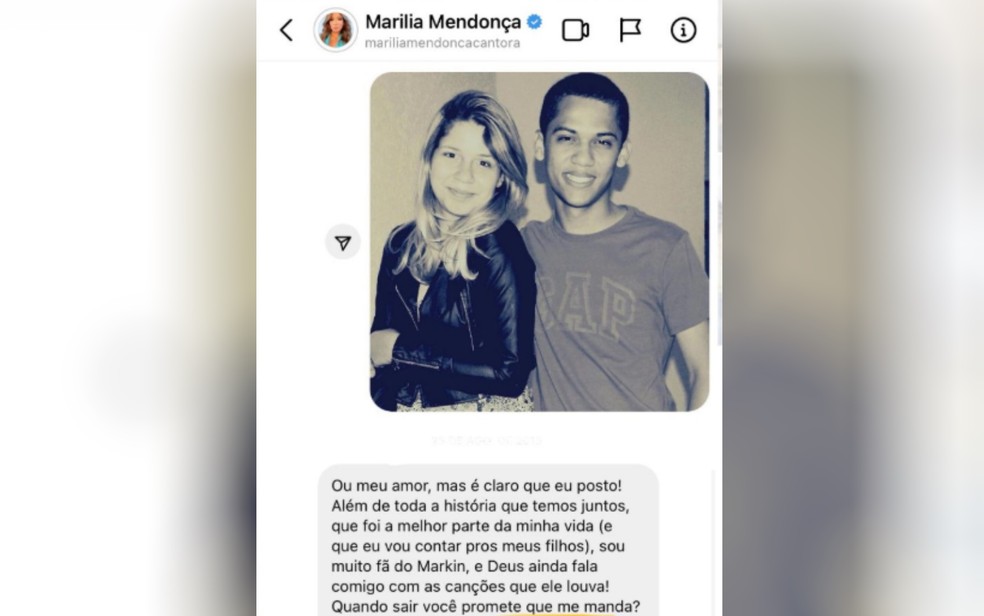 Em uma das conversas com a cantora, Alex mandou uma foto dos dois juntos e pediu para que ela divulgasse uma música do irmão dele. A cantora respondeu de forma carinhosa.