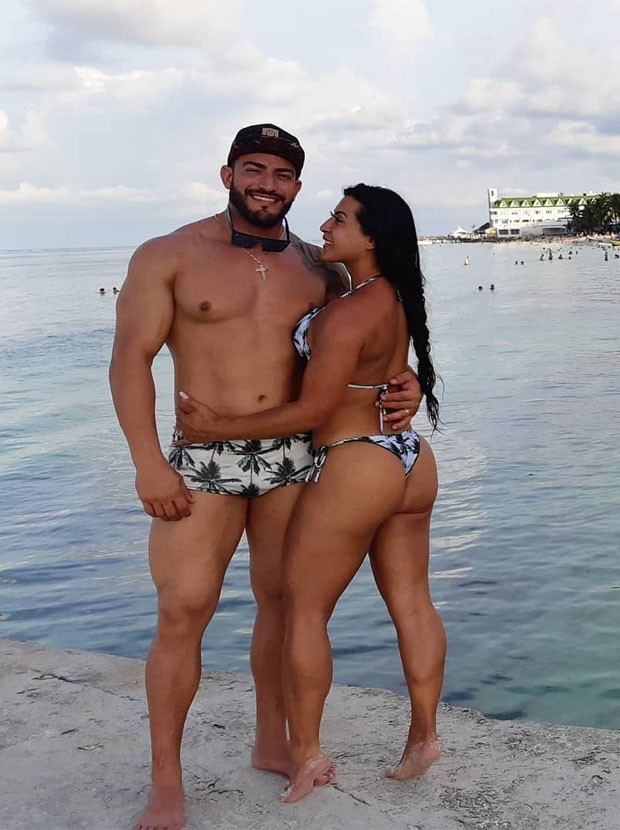 Priscila Pires e o marido, João Reis, posaram com biquíni e sunga da mesma estampa. A foto foi compartilhada pela vice-campeã do Big Brother Brasil 9, no Instagram. Ela contou que escolheu a imagem feita durante a lua de mel em San Andrés, na Colômbia, para homenagear o companheiro.